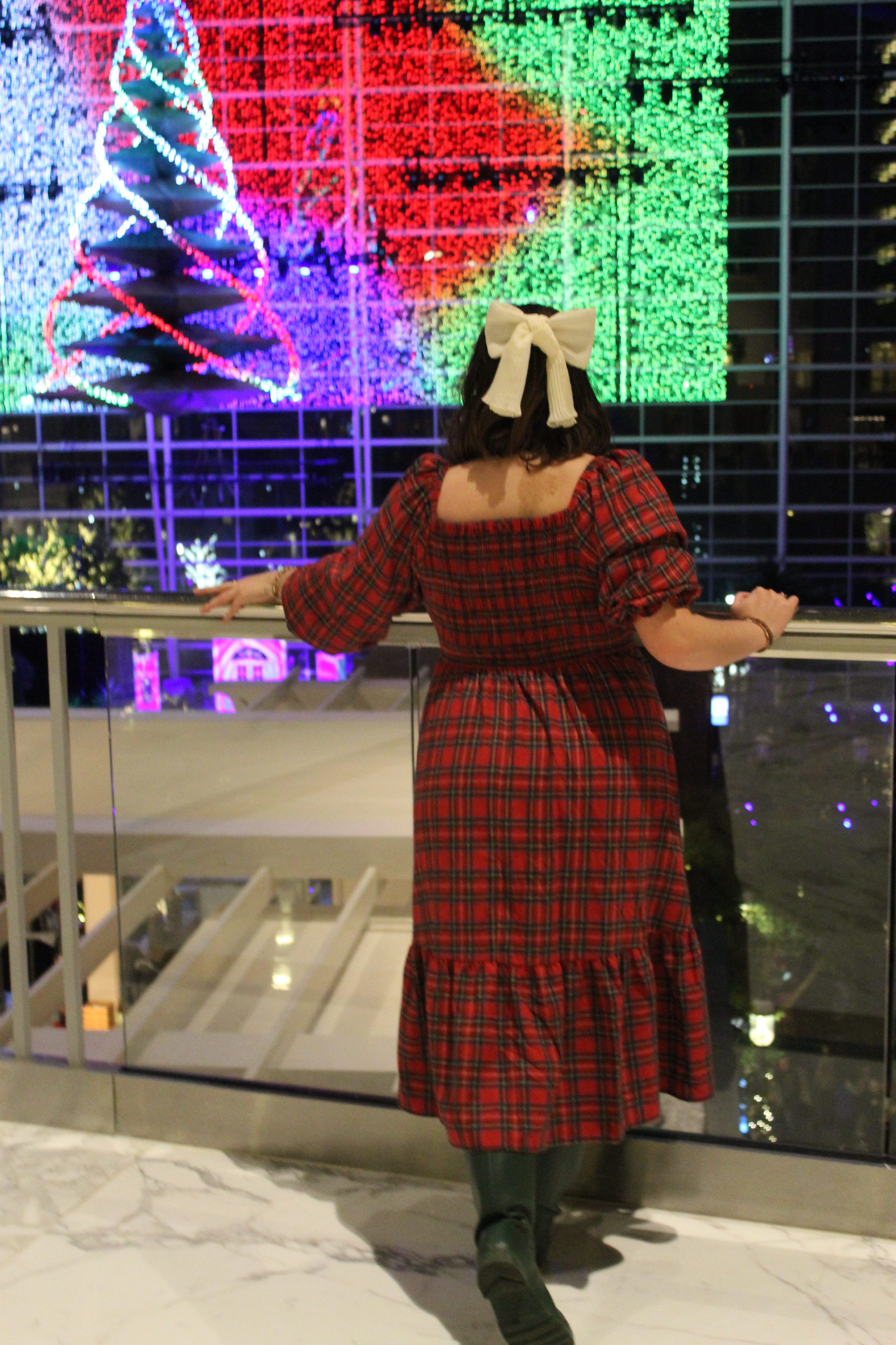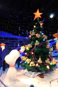 - An atrium Christmas tree that showcases unique atrium performances and periodic light displays galore throughout each evening. The lobby and second floor atrium balconies offer superb views of the tree and lights. At the lobby balcony, there is a restaurant and bar for guests to enjoy drinks and light bites on a first-come, first-served basis (crowds vary based on timing). To avoid the crowds though to get the optimal atrium tree views, it is recommended to take photos on the second floor balcony.