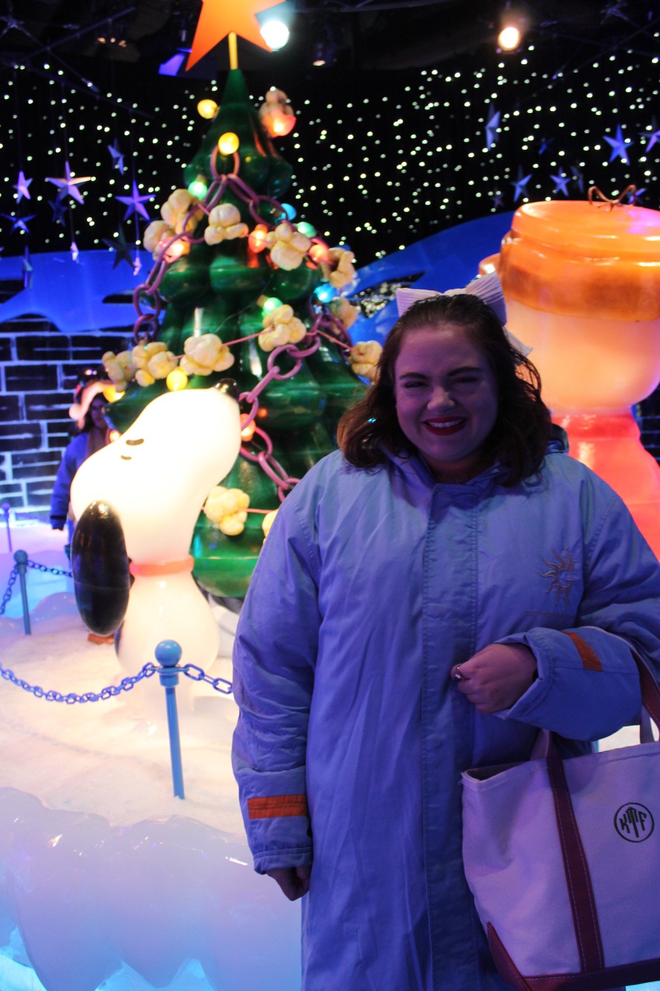 - Come bundled up! Although big, blue puffer jackets are provided to all guests as the interior temperature of the ICE! displays are around 9 degrees Fahrenheit, it’s still worth bringing a hat, gloves, and wearing lined leggings/pants to ensure you stay warm and have the best experience possible.