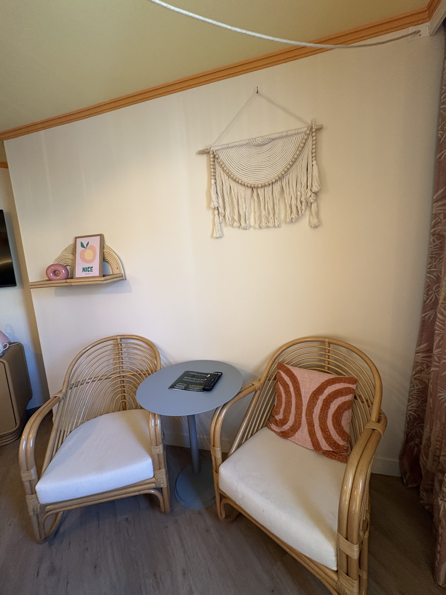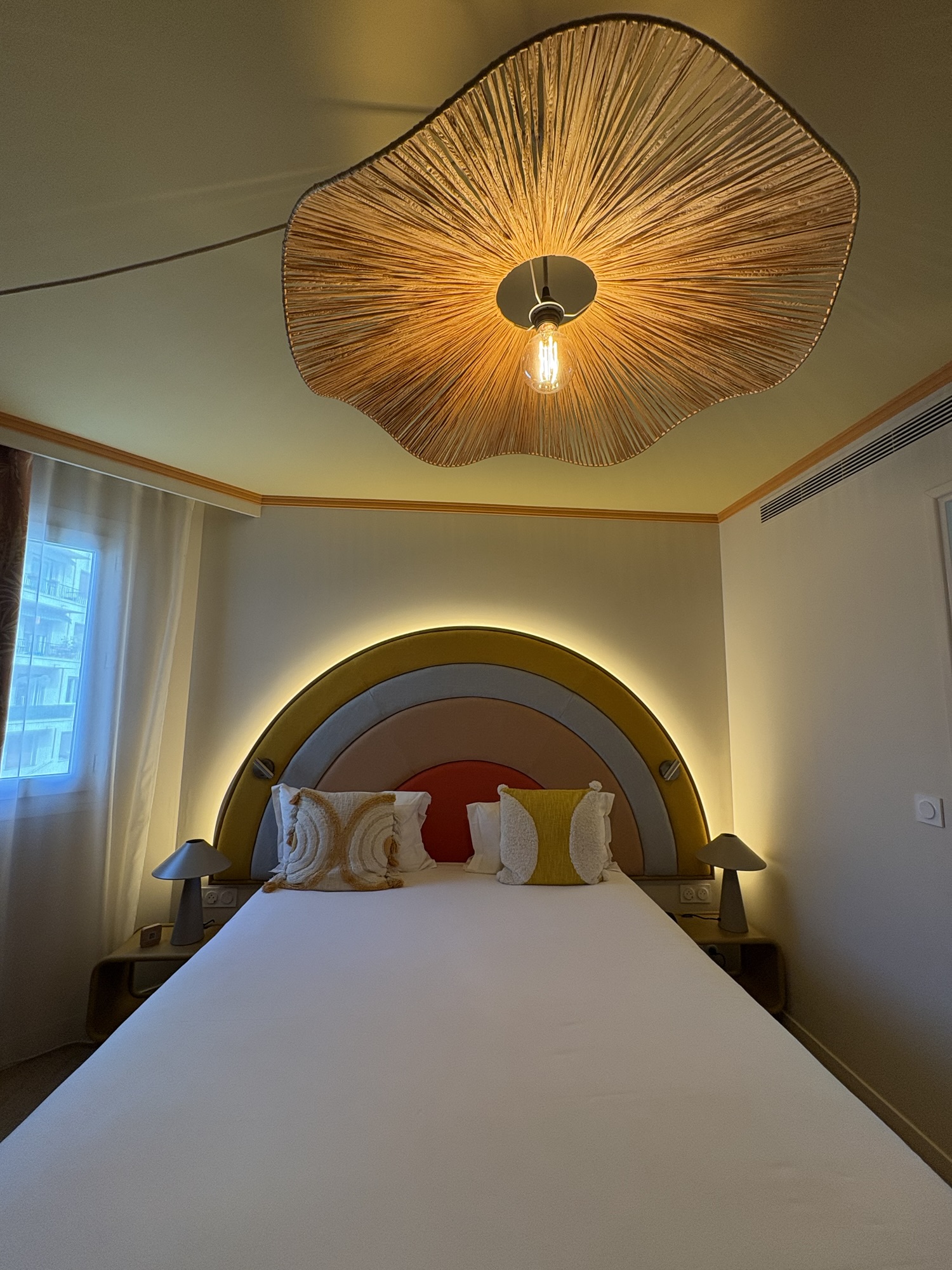 All-things Pink, Barbie, and California dreaming don’t stop at Pam Hotel’s lobby and while dining at Pamela’s Bar & Restaurant. Each of Pam Hotel’s 102 rooms will truly keep you California dreaming while in the heart of Nice, France! Each room has a laptop safe, free wifi, a private bathroom with a hair dryer and fully stocked with Typology shampoo, soaps, and lotions, and a coffee/tea. Upon entering my room, I was immediately *in love* with how unique my room was, giving its vintage California-inspired decor seen throughout the lobby, and *of course* the sunshine headboard on my bed!