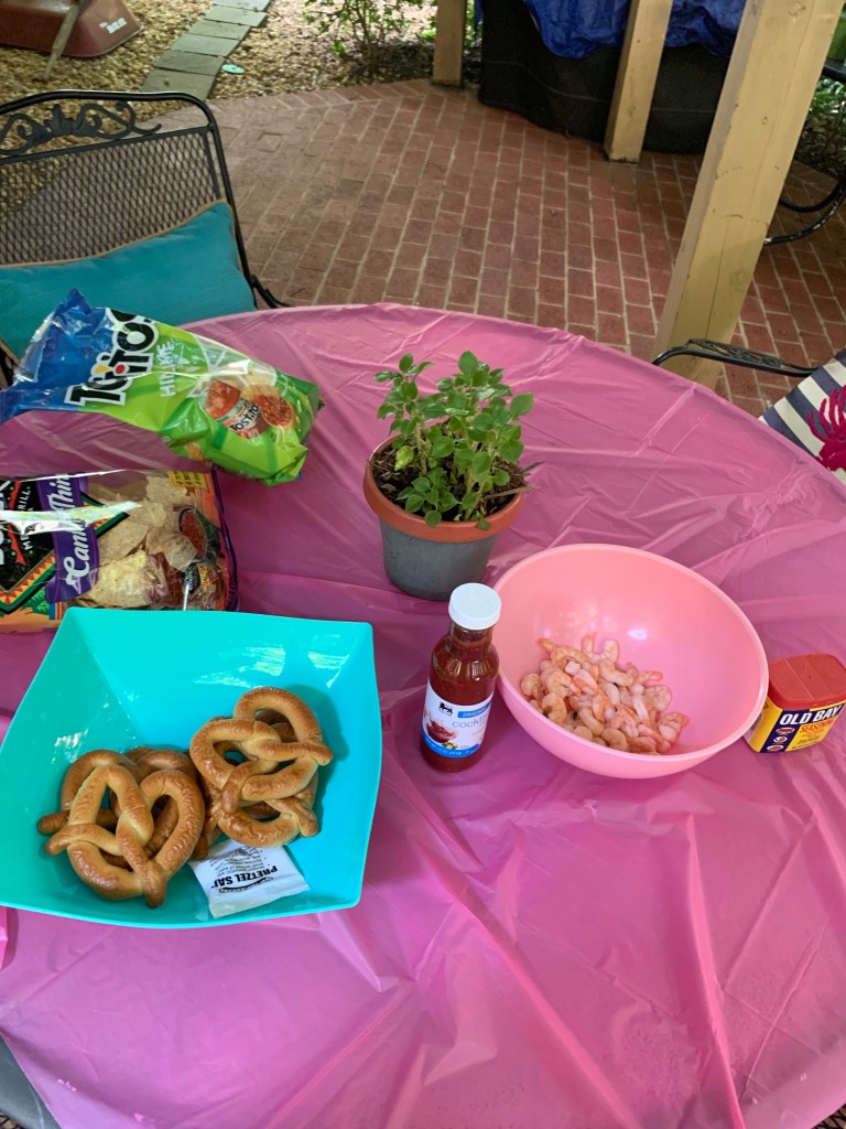 For my Housewarming Party, I decided to host it out on my patio (you can check out my Patio Reveal here!), especially since I was dog sitting. For food, I served chips, crab dip, queso, soft-serve pretzels, shrimp, and *of course* strawberry margaritas. As for decor, I got the majority of it at The Dollar Tree, unless I had it from before. Below, I will list where I purchased ALL the items used.