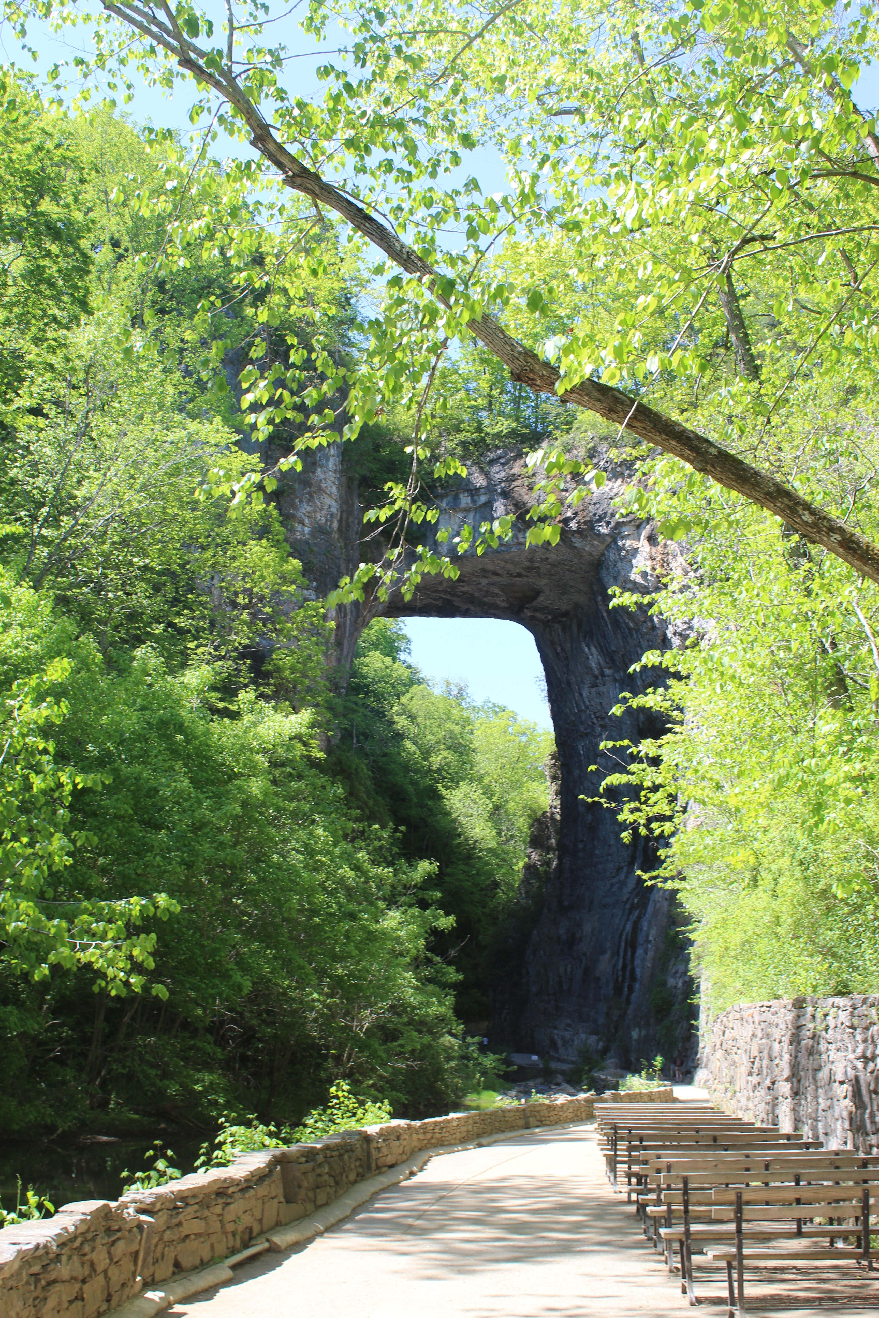 Accessing Natural Bridge: Upon entering into the Visitors Center, I found it easiest to head downstairs and outside via following the signs to Natural Bridge that are easy to find throughout it. Visitors will head outside and walk a concrete trail filled with lots of stairs alongside a beautiful creek and gorgeous forest scenery to enjoy. The stairwell pathway leads to another gift shop, where guests must purchase an admission pass ($9/13+ and $6/6-12 and Free/under 6). Anddd, then visitors can be fully enamored with the gorgeous serenity and natural formation of Natural Bridge!